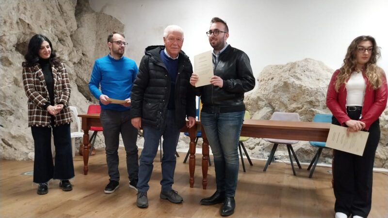 MUSSOMELI – L’altro Ieri pomeriggio 2 Aprile l’associazione “Mussomeli nella storia” ha organizzato un breve incontro incentrato sulla consegna di alcune copie della tesi di laurea alla biblioteca comunale tramite il progetto : “La scuola per la storia”. Già alcuni mesi asddietro, gli istituti scolastici di Mussomeli avevano aderito al progetto dell’associazione donando del materiale (realizzato negli anni) sul nostro territorio che successivamente è stato conservato presso la biblioteca, a futura memoria: una donazione culturale di notevole importanza . I tre laureati che hanno scritto e donato copia della tesi sul nostro territorio sono: Adriano Pellitteri (Facoltá in ingegneria civile) – ” con la tematica: “La muratura storica di Mussomeli, caratterizzazione costruttiva”; Francesca Antinoro (Facoltà in Lettere classiche) – con la tematica: “L’oralità primaria, i cantori orali da Omero ai cantastorie di Sicilia”; Salvatore Calafiore ( Facoltà storia dell’arte) – con tematica: “Mussomeli medievale: storia e arte”. Emozionati e compiaciuti i giovani e i presenti. Oltre ai giovani che hanno preso parola sull’elaborato donato, sono intervenuti il presidente dell’associazione Mario Bertolone, il prof Silvestre Messina, l’assessore Jessica Valenza e la presidente del consiglio di biblioteca Mariella Navarra. L’invito dell’associazione è quello di continuare a promuovere questo progetto e invogliare chiunque si renda disponibile a donare la copia della propria tesi che tratta come argomento il nostro territorio Mussomelese, o altro materiale scolastico. Chi desidera aderire, può contattare gli interessati, o direttamente la biblioteca.