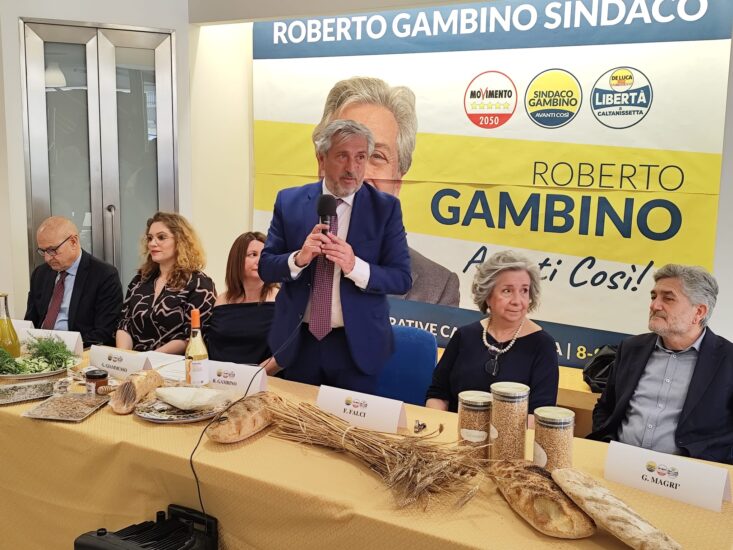 Un tavolo imbandito con i frutti della terra del territorio nisseno questa la cornice che ha scelto il sindaco di Caltanissetta Roberto Gambino per presentare la sua squadra di governo in vista del voto dell’ 8 e 9 giugno. Sempre nel segno della continuità il discorso che il primo cittadino in carica ha fatto in apertura della conferenza stampa. Si scrolla dalle spalle Gambino le accuse di “un uomo solo al comando” che gli sono state mosse durante il mandato. Ha spiegato come durante la pandemia ha dovuto fare delle scelte immediate e come si è assunto le responsabilità firmando 50 provvedimenti contingibili ed urgenti “rischiando con il mio patrimonio personale” ha detto. E poi ancora “abbiamo scelto le forze migliori della città” presentando la giunta. Sergio Iacona, Noemi Passaro, Fiorella Falci, Giovanni Magri, Grazia Giammusso i nomi espressi in prima battuta.