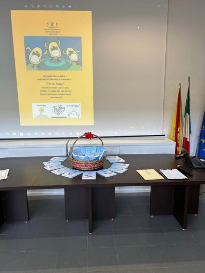 Un estratto della poesia recita “Il mio amico ha gli occhi bassi/Cammina a piedi nudi sulle pietre a ostacoli/ Siamo uguali e diversi/ due amici felici/ ma sinceri nel cuore/Quando incrocia le braccia in un angolo/ con la testa sui ginocchi/ Lui non mostra la faccia/Sogna un mondo colorato/con un cielo coi fiocchi/Ma se vuole giocare/ la tristezza scompare/ Io gli prendo la mano e si lascia guidare/ sui castelli da fare/Con la mente voliamo/sopra nuvole d’Amore …” La cerimonia ufficiale di premiazione si è tenuta a metà maggio presso il teatro Gentile di Fabriano. I bambini della I A non hanno potuto ritirare il premio di persona, di conseguenza l’organizzazione ha spedito i libri alla loro scuola. I discenti sono stati coordinati dal docente della classe e autore di libri per bambini Salvatore Siina. Nel corso della manifestazione di fine anno scolastico dal titolo “I’m so happy: Reading di poesie, canti e balli” è avvenuta la consegna ufficiale dei premi. Il docente vicario Salvatore Falegnane ha portato i saluti e i complimenti alla classe, da parte della preside e ha consegnato altresì i diplomi di merito.
