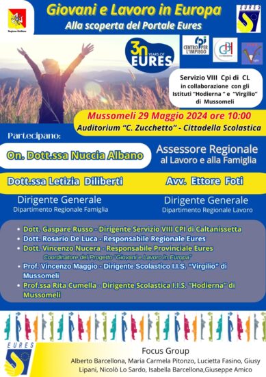 MUSSOMELI – “Giovani e lavoro in Europa alla scoperta del portale Eures” e “Potenziare tirocinio e apprendistato come strumenti di sviluppo delle competenze e di inserimento lavorativo”. Sono stati questi gli argomenti trattati durante il seminario informativo tenutosi nella mattinata del 29/05/2024 presso l’auditorium “Lillo Zucchetto” degli Istituti Scolastici Superiori “Virgilio” e “G. B. Hodierna” di Mussomeli. Sono stati presentati alcuni dei servizi della rete EURES: informazione, consulenza, orientamento e reclutamento a chi cerca o offre lavoro in Europa e a chi intende trasferirsi in un altro Paese per lavoro, tirocinio o apprendistato. L’obiettivo del seminario è stato quello di far conoscere ai più giovani, e non solo, le dinamiche del mercato del lavoro, un’opportunità concreta per entrare in contatto con i principali servizi offerti dal Centro per l’Impiego e dalla rete Eures. Il seminario è stato coordinato dal responsabile provinciale Eures il dott. Enzo Nucera (il video dell’incontro)