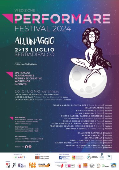 E’ tutto pronto a Serradifalco (Caltanissetta) per la sesta edizione di Performare Festival che prenderà il via martedì 2 luglio e si concluderà sabato 13 luglio. L’evento promuove la danza contemporanea e la ricerca artistica, con una ricca programmazione composta da spettacoli, performance, residenze creative, workshop e incontri di approfondimento