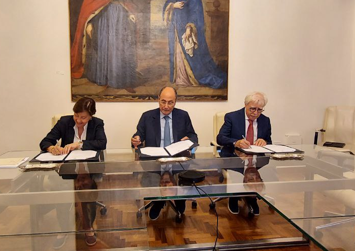 Realizzare un sistema integrato di alta formazione professionale, di sviluppo della ricerca biomedica e clinica e delle connesse attività assistenziali. Sono questi gli obiettivi del protocollo d’intesa tra la Regione Siciliana e l’università Kore di Enna, firmato stamattina dal presidente Renato Schifani, dall’assessore alla Salute, Giovanna Volo e dal presidente dell’ateneo ennese, Cataldo Salerno. Presenti anche i dirigenti generali del dipartimento Pianificazione strategica, Salvatore Iacolino, e del Dasoe, Salvatore Requirez, e il prorettore della facoltà di Medicina Paolo Scollo. Si tratta di un percorso che era già stato avviato con le altre tre università siciliane e che oggi si completa con la Kore.