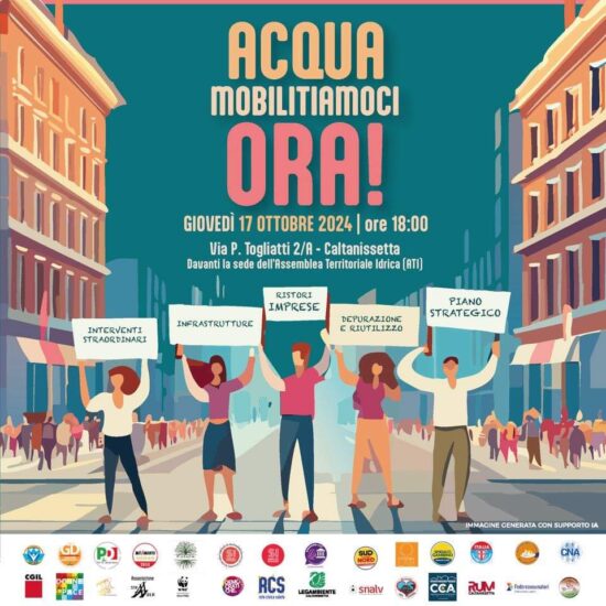 Giovedì 17 ottobre si terrà a Caltanissetta, in Via P. Togliatti, un incontro/sit-in in prossimità della sede dell’Assemblea Territoriale Idrica per rivendicare il diritto all’acqua.