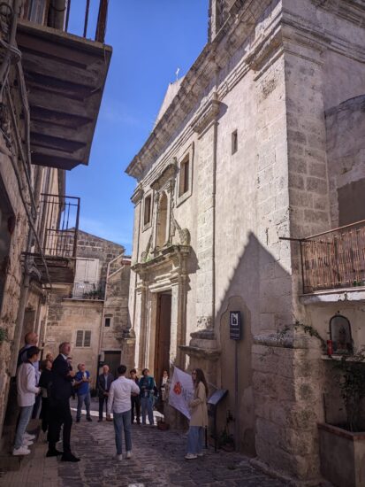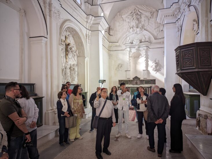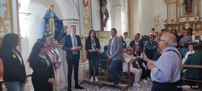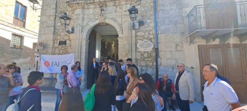 MUSSOMELI – Boom di visitatori, con eccezionali e coinvolgenti guide riconducibili agli studenti del “Virgilio” e dell’”Hodierna”di Mussomeli, del docente Giuseppe Spera e dei “lamentatori” dell’Arciconfraternita che , in una giornata di sole ottobrino, ha caratterizzato e concluso la splendida giornata FAI d’autunno che, col loro argomentare e “lamenti”, ha lasciati soddisfatti non solo i promotori, ma anche e soprattutto organizzatori, attori e i tanti visitatori che hanno fruito di questa interessante iniziativa. La giornata era Iniziata alle 10 con raduno in Piazza Umberto, dove era sistemato lo stand della FAI delegazione di Caltanissetta. I numerosi ragazzi e docenti degli istituti scolastici superiori erano già pronti a seguire l’itinerario per le visite in alcune chiese e oratori del centro storico, ad iniziare dal quartiere Madrice con la chiesa della Provvidenza, Santa Margherita, Chiesa Madre, Oratorio Madrice, chiesa dei Monti, Chiesa S. Antonio Abate, Santuario Madonna dei Miracoli con annessa omonima confraternita, dove i visitatori hanno potuto ammirare anche il grandioso telo, rinvenuto casualmente, restaurato e conservato dalla confraternita e, per l’occasione, esposto nel chiostro San Domenico. Un telo sconosciuto ai più. Si è iniziato con la chiesa della Provvidenza dove era presente l’amministrazione comunale col vice sindaco Seby Lo Conte e l’assessore alla cultura Jessica Valenza ed il presidente e vice presidente Gianluca Nigrelli e Yosella Schifano, i quali hanno ringraziato la delegazione FAI, gli Istituti “Hodierna e “Virgilio” e i diversi collaboratori disponibili per la riuscita dell’importante evento di promozione e salvaguardia dei suoi beni artistici e culturali. L’occasione è stata, poi, propizia perché proprio nella chiesa della Provvidenza, in una nicchia era provvisoriamente visibile la statua della Madonna del Rifugio (comunemente chiamata Madonna del Riparo) che, su iniziativa del compianto Guido Sorge, è stata restaurata dall’arch. Eliana Valenza. Presente la figlia Laura Sorge. Statua che viene custodita nella storica omonima Cappella, all’uscita del paese. Da sottolineare anche che la cucina solidale in Piazza Umberto di Danny McCubbin era aperta ai tantissimi ospiti arrivati da ogni dove per questa giornata FAI d’autunno.