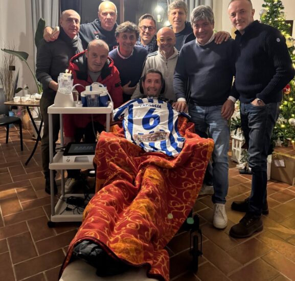 Anche quest’anno, dunque, una delegazione delle vecchie glorie del calcio nisseno, con la gradita presenza dell’indimenticabile ex presidente della Nissa Luca Mannino, nel pomeriggio di martedì 17 dicembre, si è recata a casa di Davide, che da oltre 14 anni lotta gagliardamente contro la SLA, per uno scambio di auguri e la consegna di un ‘pensiero’. Immancabile il tuffo nei ricordi e negli aneddoti di un calcio nisseno che non esiste più.