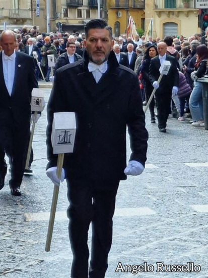 Michele Spena, sposato con Nunziata Abbozzi, è stato titolare da oltre 20 anni di un’impresa. Adesso è in pensione e sta dedicando il proprio tempo alla famiglia e all’amore per le tradizioni. La carica di alabardiere, invece, è stata affidata a Giuseppe Sanalitro di 39 anni. Nisseno ma residente a Pagani in provincia di Salerno dove svolge la sua attività di muratore. Giuseppe, per altro, appassionato della sua Città e della Settimana Santa, ha anche raccontato con alcuni suoi scatti la Settimana Santa a Caltanissetta valorizzandone la bellezza che offre ogni anno.