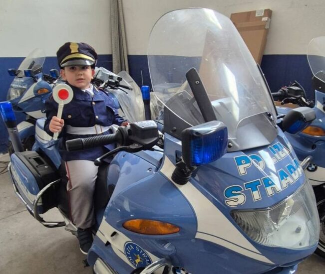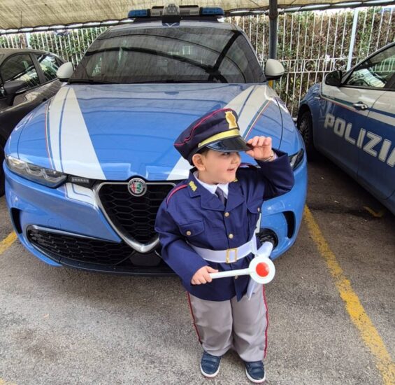 Il piccolo Maurizio, vestito da poliziotto con cappello e tanto di palettina, non s’è perso un solo attimo di questa sua visita che tanto aveva sognato di fare riuscendo a mantenere sempre la massima attenzione e facendosi immortalare per un evento che, nel suo piccolo, è destinato a restare impresso nella sua mente e nel suo cuore per il prosieguo della sua ancor giovane vita.