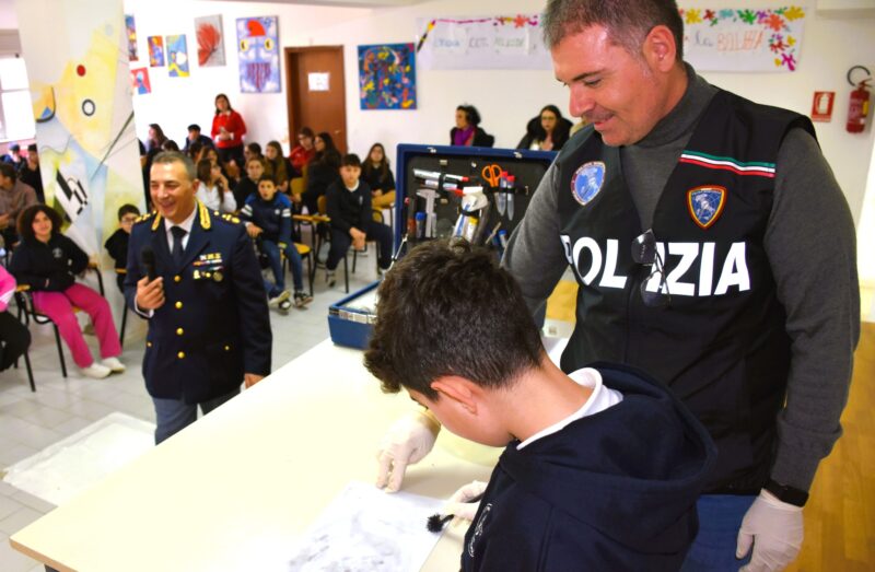 Il Dirigente del Commissariato di Pubblica Sicurezza, Vice Questore Giovanni Minardi, e gli agenti della Squadra Volante e della Polizia Scientifica hanno risposto alle numerosissime domande dei giovani alunni delle prime e seconde classi. I temi trattati: legalità, bullismo, violenza domestica, droga.