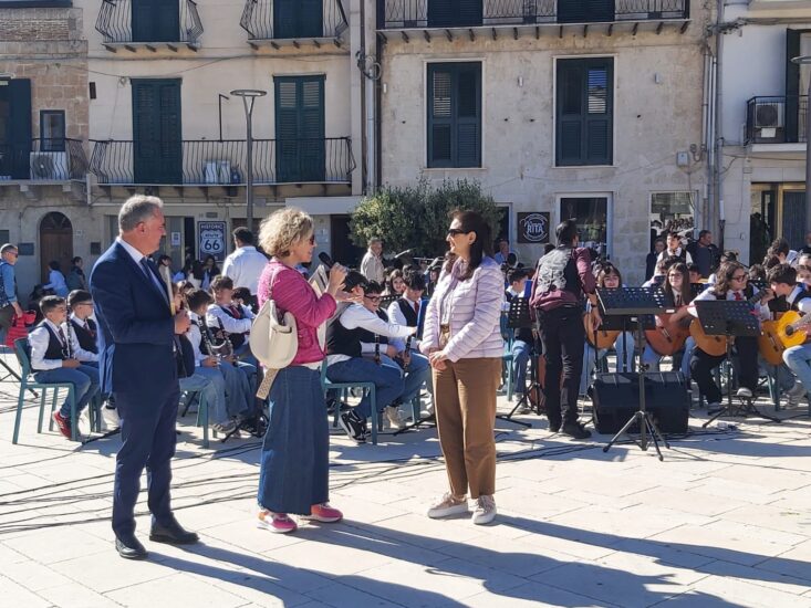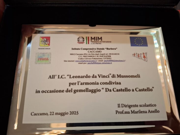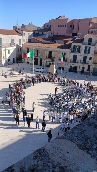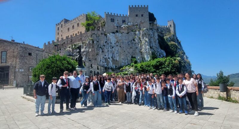 MUSSOMELI – I ragazzi del “Leonardo’ S Ensemble di Mussomeli, accompagnati dal corpo docente ad indirizzo musicale della “Leonardo Da Vinci”, c’erano stati in trasferta a Caccamo lo scorso 22 maggio per il gemellaggio “Da Castello a Castello” col Comprensivo “Barbera”, di cui è dirigente scolastico la professoressa Marilena Anello. Una visita per suggellare, con le attività di gemellaggio, le affinità delle tradizioni musicali e le pratiche di insegnamento tra i due istituti scolastici. Hanno visitato il Castello della cittadina palermitana ed hanno eseguito alcuni brani musicali. Il successivo 28 maggio gli alunni di Caccamo, ricambiando la visita, sono arrivati a Mussomeli e, accompagnati dalle guide e dal personale comunale, hanno avuto modo di visitare l’antico maniero anche al suo interno, inerpicandosi fino alla cima. Nel pomeriggio, nella cornice di Piazza Umberto, in mezzo a un coreografico girotondo, le due orchestre gemellate, fra i calorosi applausi del pubblico, hanno eseguito i loro repertori musicali. Presenti la dirigente scolastica Alessandra Camerota ed il sindaco di Mussomeli Giuseppe Catania e l’assessore alla Pubblica Istruzione Jessica Valenza che hanno dato il loro saluto.