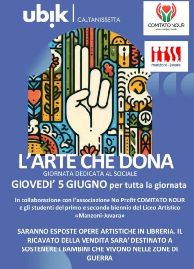 CALTANISSETTA – Giovedì 5 giugno, la Libreria Ubik di via J.F. Kennedy 9/11 ospiterà “L’arte che dona”, un evento che unisce la creatività degli studenti del Liceo Artistico Manzoni Juvara alla solidarietà per i bambini che vivono nelle zone di guerra.