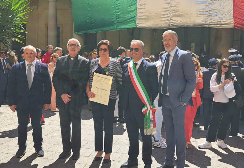 MUSSOMELI – In occasione della celebrazione del 2 giugno Festa della Repubblica, presenti il Prefetto Chiara Armenia, tutti i sindaci della provincia, le autorità civili e militari, c’era anche lei, nel capoluogo, la mussomelese Maria Caltagirone che assieme ad altri hanno ritirato l’attestato dell’onorificenza al Merito della Repubblica Italiana rilasciato dal presidente Mattarella. Da sottolineare che Maria Caltagirone, sposata con due figli, contrattista a tempo determinato, è da 23 anni in servizio al Comune di Mussomeli come amministrativo, ininterrottamente, presso il comando dei Vigili Urbani. Un quarto di secolo, trascorso fra le stanze dell’ufficio in mezzo alle carte, computer e archivi, con un lavoro sempre in evoluzione, in un delicato settore dove ha espletato il suo servizio, ancorché in stato di precarietà. Un costante impegno lavorativo che non è passato inosservato ai vertici dell’Ente specialmente nel periodo difficile del Covid, durante il quale si è resa ancora più attenta e responsabile nello svolgimento del suo lavoro.