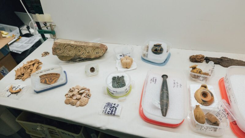 Uno dei risultati chiave riguarda lo scavo nell’angolo nord-ovest del santuario (SAS W), dove è emerso un accesso monumentale del V secolo a.C. La sequenza stratigrafica , dalla fase pre-greca al medioevo, è praticamente rimasta intatta e ha restituito tracce e reperti straordinari, tra cui la cuspide di lancia in ferro infissa nel terreno.