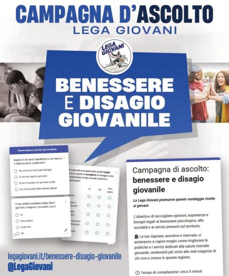 Ora – spiega l’esponente del movimento giovanile del Carroccio – con un questionario realizzato dagli amministratori locali della Lega Giovani, lanciamo una campagna d’ascolto rivolta alle nuove generazioni. L’obiettivo è raccogliere esperienze, proposte e criticità direttamente da chi vive in prima persona le trasformazioni del nostro tempo, per contribuire al lavoro delle istituzioni e del nostro partito su una questione tanto delicata quanto urgente.