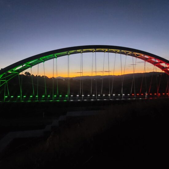 A dominare la scena è il tricolore: verde, bianco e rosso che svettano sull’arco del ponte, regalando uno spettacolo che già dalle prime immagini sta emozionando la cittadinanza. Non si tratta solo di un dettaglio estetico: quell’illuminazione richiama un senso di appartenenza, di identità nazionale, e si carica di un forte valore simbolico. Il ponte San Giuliano sembra voler chiudere idealmente un lungo e faticoso capitolo di disagi legati ai lavori della SS640, una viabilità che per anni ha messo a dura prova il territorio.