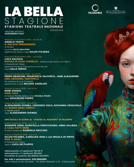 Caltanissetta si prepara ad accogliere una nuova stagione teatrale all’insegna della qualità, della passione e dell’identità culturale. Dal 12 novembre 2025 prenderà il via “La Bella Stagione”, rassegna nazionale diretta da Alessandra Falci, che curerà la programmazione del Teatro Rosso di San Secondo all’interno del progetto “Le Quattro Stagioni del Teatro”, fortemente voluto dal direttore Aldo Rapè.