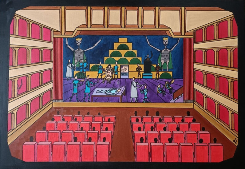 I vincitori avranno accesso a un mondo pensato per accompagnarli in un’esperienza espositiva e promozionale che unisce prestigio e concretezza. L’edizione 2025 ha premiato dieci artisti straordinari, provenienti da contesti culturali diversi, ma accomunati da un linguaggio espressivo potente e personale. I vincitori del Premio “IO SONO L’ARTISTA – The Artist’s Voice” sono: Natalie Ahmetovic De Vries (Paesi Bassi), Juliette Cappe (Francia), Maria Escano (Spagna), Salvatore Gumina (Italia), Dušan Kokoška (Slovacchia), Frédéric Léna (Francia), Metzler Sieglinde (Germania), Angelė Šimoliūnienė (Lituania), Roberto Tedoldi(Italia), Riccardo Testa (Italia), L’opera di Sotir verrà esposta presso la Galleria Roccart di Firenze, nel cuore artistico della città, dal 22 novembre al 6 dicembre 2025, è una grande tela orizzontale, il quale osservatore si trova davanti ad un teatro, con un palco affollato di personaggi. Sullo sfondo si evincono due presenze di grandi dimensioni che rappresentano gli Anticristi, al centro l’emblematica visione della torre di Babele, a seguire da sinistra verso destra si denota un sacerdote atto a benedire due uomini in un matrimonio, una donna che ha deciso di abortire il proprio bimbo che si intravede nello schermo ecografico del monitor, ancora un politico che decanta virtù osannato dal popolo/sudditi. In primo piano un lettino con un paziente che subisce dei trattamenti sanitari obbligatori, un sacerdote che benedice un peccatore e a conclusione due bambini intenti e incantati davanti i monitor dei PC/Tablet/TV. Un pubblico inerme osserva lo spettacolo e a sinistra all’interno di un palchetto laterale si denota una presenza, è Sotir l’artista. Sotir con quest’opera ancora una volta di denuncia riassume l’attuale stile di vita, le scelte condizionate da un mondo occidentale allo sfascio, lontano dal creatore. Sotir ancora una volta proietta in un macabro progresso/regresso attuale. Segue link con gli artisti premiati e le loro opere. https://www.pitturiamo.eu/arte-contemporanea/10-artisti-10-visioni-ecco-chi-ha-conquistato-il-premio-io-sono-lartista-the-artists-voice/