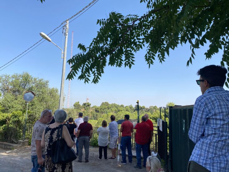 La collina di Sant’Anna, dove sorge l’imponente traliccio, è interdetta e presidiata per ragioni di sicurezza. Ma questo non ha impedito alle persone di cercare comunque una vicinanza, almeno visiva, a ciò che sta per accadere. Smartphone alla mano, tutti puntano l’obiettivo verso l’icona che per oltre mezzo secolo ha inciso la skyline nissena. Un comportamento che ricorda quasi un atteggiamento teatrale, come se la cittadinanza intera stesse partecipando a una messinscena dal forte impatto emotivo.