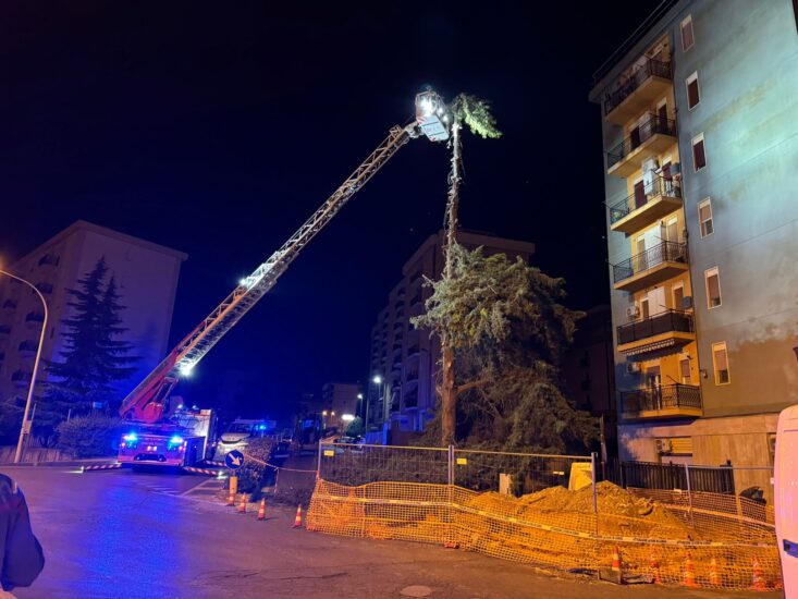 L’operazione è stata eseguita dai Vigili del fuoco, che con l’ausilio di una scala mobile hanno provveduto al taglio in sicurezza della pianta. Sul posto erano presenti i tecnici del Comune, guidati dall’architetto Valerio Bellini, responsabile dell’Ufficio tecnico di Caltanissetta, e il presidente della Commissione Urbanistica, l’architetto Fabrizio Di Dio, che ha seguito da vicino le operazioni.