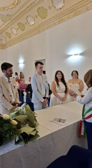 Da parte dell’assessore comunale Tilde Falcone è arrivato l’augurio di un futuro radioso e ricco di felicità per le due coppie di sposi che, a loro volta, hanno spiegato che il loro matrimonio è cresciuto con amore e costanza e che oggi s’è finalmente coronato il loro sogno d’amore. Un’emozione doppia per un evento unico nel suo genere.