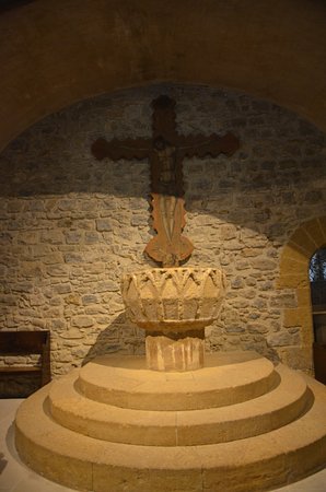 L’altare maggiore, insieme alla protesis e al diaconicon, è ricavato da massicci blocchi di pietra di Sabucina, materia che racconta il territorio con la sua sola presenza. Infine, all’interno dell’abbazia è custodita anche una urna cineraria romana, risalente al I secolo dopo Cristo: apparteneva a Diadumeno, liberto dell’imperatore Tito, e rappresenta un’ulteriore traccia della lunga stratificazione storica che attraversa questo luogo.