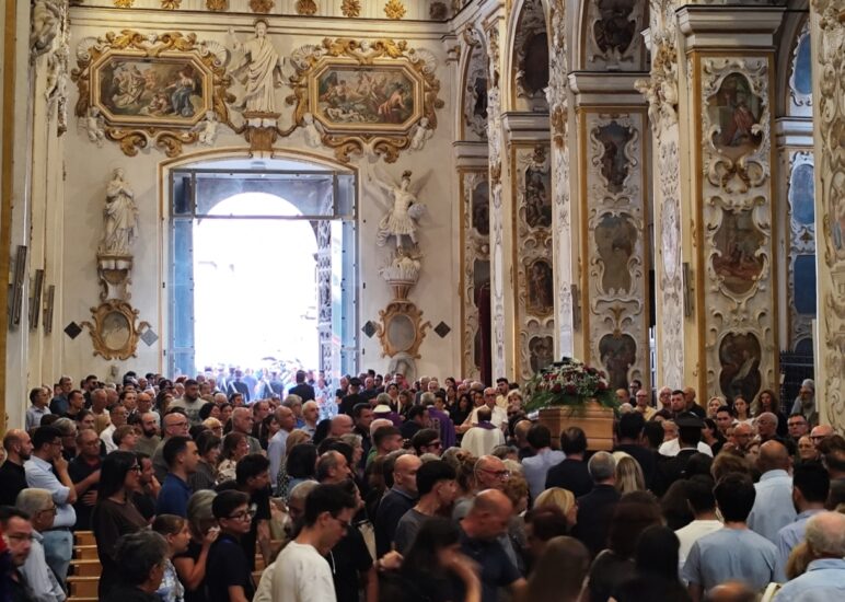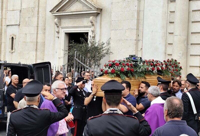 All’uscita dalla Cattedrale, un grande applauso ha accolto il feretro, seguito dal suono potente della sirena dei Carabinieri che ha squarciato il silenzio di una piazza raccolta in preghiera. L’ultima sirena, quella del commiato, ha salutato Mario per sempre, accompagnandolo verso l’eternità.