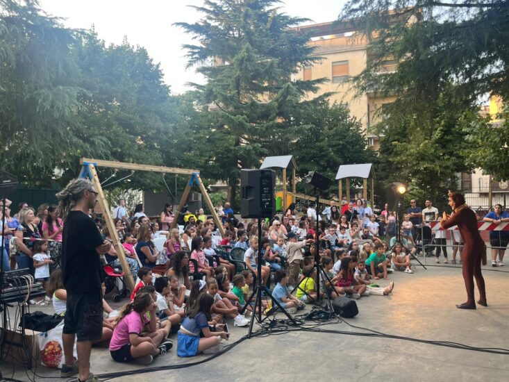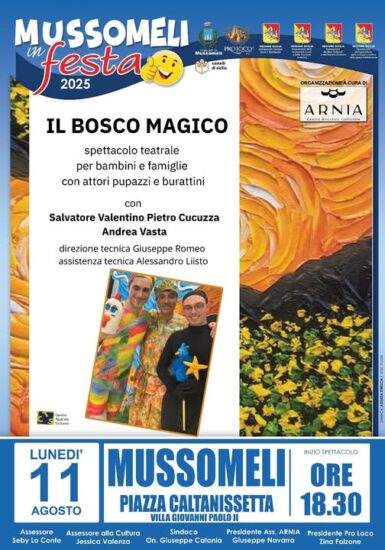 MUSSOMELI – A Mussomeli, la villa di piazza Caltanissetta, intitolata a Giovanni Paolo II, nel pomeriggio dell’11 agosto 2025 si è trasformato in un palcoscenico con dei bravi attori del Centro Teatrale di Catania che hanno mostrato grande professionalità e competenza, Una iniziativa voluta e realizzata grazie al prezioso contributo di Arnia che ha visto l’ampia partecipazione di giovani spettatori attenti ad incuriositi. Infatti era presente un pubblico speciale: Ragazzi e piccini e, con loro, anche i genitori. “È stato bellissimo vedere l’emozione dipinta sui volti dei più piccoli, i loro sorrisi e le loro risate, ha commentato il vice sindaco Lo Conte che era presente con il sindaco Catania”, E Giuseppe Navarra, Presidente dell’Associazione Arnia, compiaciuto ha sottolineato: “Vedere i bambini felici e affascinati dal Teatro e della sua Magia è la cosa che più mi gratifica in questo mio percorso artistico che dura ormai da quasi 10 anni”. Ha poi ringraziato I componenti del CTS Centro Teatrale Siciliano di Catania, il Sindaco Giuseppe Catania, l’amministrazione e gli Assessori Seby Lo Conte, Jessica Valenza, quest’ultima assessore alla Cultura, con la promessa di altre iniziative come questa rappresentazione. Evidentemente soddisfatti i genitori che si sono complimentati con gli organizzatori.