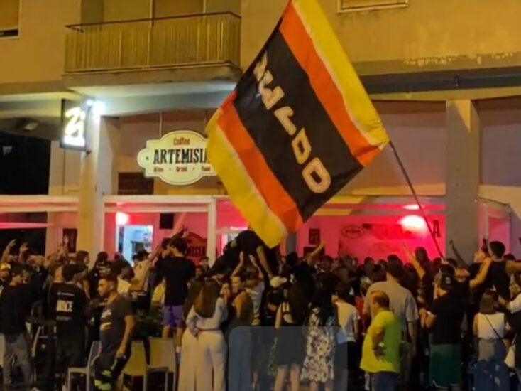 Gli Ultras e i gruppi organizzati, come ormai da consuetudine, hanno intonato cori a sostegno della squadra, trasformando la strada in un vero e proprio palcoscenico di entusiasmo. Indossavano tutti magliette nere con la scritta “93100”: un richiamo forte e identitario al codice postale di Caltanissetta, stampato con i colori giallo e rosso, simbolo del cuore pulsante del tifo nisseno. Un colpo d’occhio che non è passato inosservato nemmeno agli automobilisti di passaggio, che hanno rallentato incuriositi.