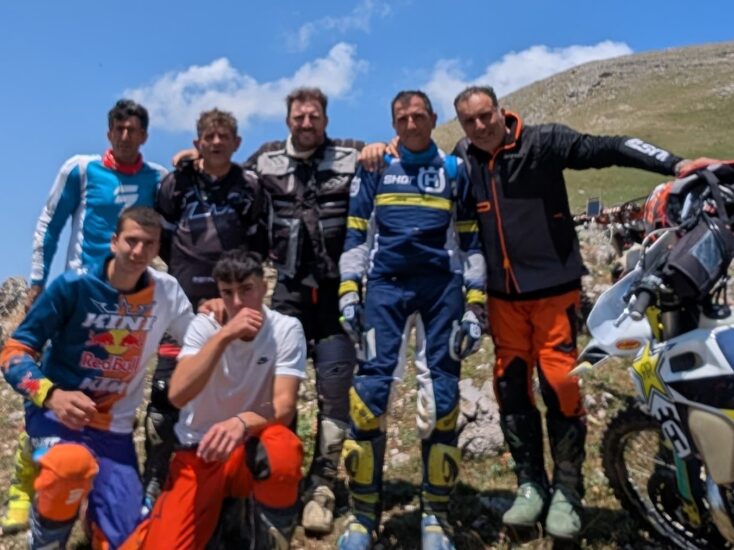 La comitiva era composta da Giuseppe Lanzalaco, considerato da molti uno tra gli antesignani dell’enduro nisseno non agonistico per la sua passione fin dai tempi del liceo , dall’avvocato Gaetano Centorbi, da Fabrizio e Alessandro Tuminelli, da Rocco Scarantino e Gianluca Granata. Con loro anche il più giovane del gruppo: Riccardino, appena 16 anni, che con entusiasmo, tenacia e spirito d’avventura ha affrontato l’intero percorso dimostrando di avere già la stoffa del vero motociclista.