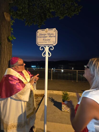 VILLALBA – A Villalba, nella giornata dell’8 agosto 2025 è stato intitolato all’ illustre cittadino villalbese che fu Vescovo di Noto dal 1915 al 1935 lo Slargo Monsignor Giuseppe Maria Vizzini alla presenza di monsignore Salvatore Rumeo, attuale vescovo di Noto, per la sua partecipazione alla cerimonia. I ringraziamenti del sindaco sono andati a Padre Marko Cosentino per il supporto dato nell’iniziativa e ai familiari di monsignor Vizzini per aver condiviso questo momento di celebrazione. E’ stato ricordato anche la memoria di Gaetano Mendola, il quale ha generosamente donato la statua del Cristo Redentore, collocata nella piazza per trasformarla in un luogo di incontro e di fede. Ringraziamenti anche per la Vicesindaco Lina La Monaca e l Geom. Mario Milano per l’impegno e dedizione nel seguire i lavori di riqualificazione della piazzetta e il vigile urbano Calogero Gialì per l’eccezionale supporto nell’organizzazione dell’evento.