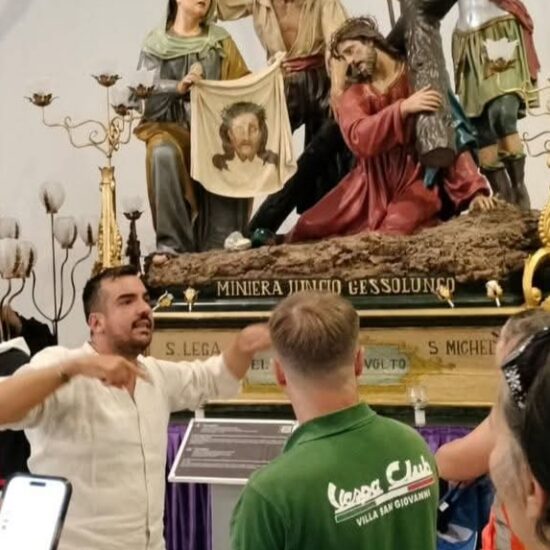 Il raduno è stato anche occasione di scoperta e valorizzazione culturale: i partecipanti hanno visitato la sala espositiva del Sant’Iodecimo, dove l’attore e regista Francesco Miceli ha illustrato la storia e il significato delle “varie” della Settimana Santa, legando così il motorismo alla profonda identità cittadina.