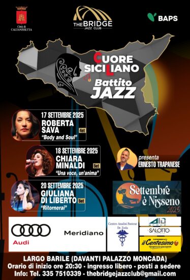 “Con “Cuore Siciliano – Battito Jazz” Caltanissetta celebra il jazz come linguaggio universale di creatività, libertà e incontro tra generazioni. Questo festival non è solo spettacolo: è crescita culturale, valorizzazione dei nostri luoghi e occasione di sviluppo per l’intera comunità – ha concluso l’assessore Pier Paolo Olivo -. Il jazz, con la sua storia di libertà e dialogo, è lo strumento perfetto per raccontare la nostra identità, unendo tradizione e innovazione. E scegliere il piazzale di Palazzo Moncada come palcoscenico non è solo un omaggio alla nostra storia, ma un invito a vivere un’esperienza in cui la bellezza del nostro patrimonio si fonde con la vitalità della musica. Ringrazio l’Associazione promotrice e tutti i partner che stanno lavorando per realizzare questo progetto. Invito tutti a partecipare e a lasciarsi coinvolgere dal ritmo e dall’energia del jazz, perché solo insieme possiamo far battere più forte il cuore della nostra città”.