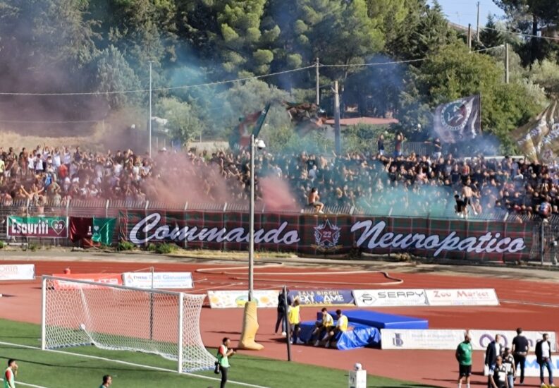 Eppure il derby di Coppa Italia aveva regalato anche un colpo d’occhio straordinario. Le due curve, pur tra gli immancabili sfottò, avevano dato vita a coreografie bellissime, trasformando lo stadio “Marco Tomaselli” in un impianto da categoria superiore per intensità di tifo e partecipazione. Novanta minuti di cori, colori e passione che hanno sostenuto le due squadre senza sosta, in un clima acceso ma genuinamente sportivo. Un vero peccato, perché quel giorno i tifosi “veri” avevano offerto uno spettacolo da applausi.