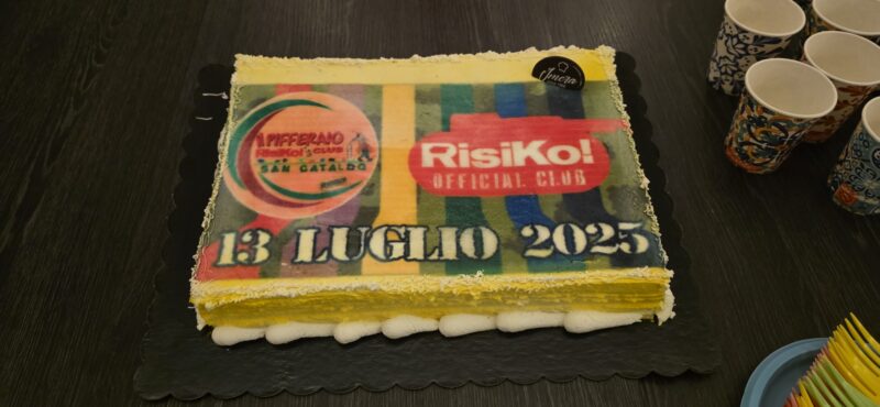 Prima dell’inizio della serata di gioco, i vari giocatori partecipanti si sono seduti insieme per un ottima pizza da gustare tra sorrisi e scherzi legati al “chi vincerà la partita, chi entrerà in finale o semifinale”, e si è svolta anche la piccola festicciola per la promozione del Club, divenuto Risiko Club Ufficiale lo scorso 13 luglio. Davanti ad un’ottima torta colorata e al brindisi finale, si stringono nuove amicizie e si rinsaldano quelle storiche, anche tra avversari di Club diversi, tutti insieme a festeggiare i valori del Risiko che in questi giorni è stato presente sulle cronache nazionali, per il nuovo campione nazionale di questo splendido gioco che ha vinto il torneo di Milano con 40 finalisti lo scorso 14 settembre.