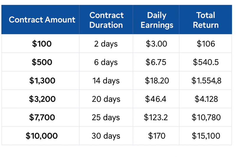 Zero barriers – No hardware, no setup, no hassle. Flexible options – Contracts to suit every budget. 100% green – Powered entirely by renewable energy. Secure – Enterprise-grade encryption and wallet protection. Daily payouts – Profitable every 24 hours. Risk-free start – New users get $15 in free credit.