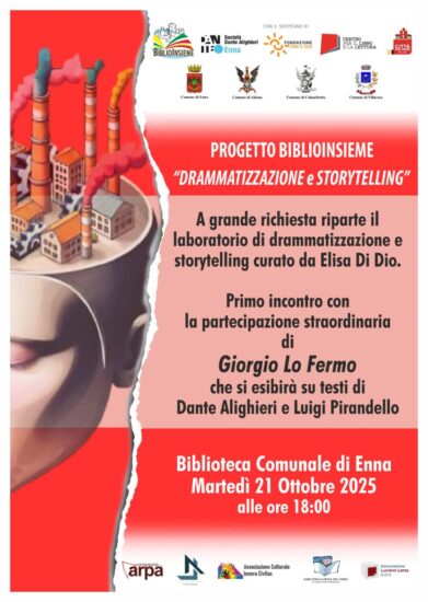 L’iniziativa è sostenuta dalla Fondazione Con il Sud e dal Centro per il libro e la lettura del Ministero della Cultura. Il nuovo ciclo si aprirà martedì 21 ottobre alle 18:00, alla Biblioteca Comunale di Enna, con la partecipazione straordinaria di Giorgio Lo Fermo, che si esibirà su testi di Dante Alighieri e Luigi Pirandello. Giorgio Lo Fermo è artista e attore siciliano, nato nel 1947, attivo tra pittura, scultura e teatro; da molti anni vive e lavora a Roma. Elisa Di Dio, xibetana, è formatrice teatrale, drammaturga e attrice della Compagnia dell’Arpa. Durante il primo ciclo, la letteratura ha preso vita attraverso la drammatizzazione di grandi opere: pagine diventate voce, corpo e azione scenica. Attraverso il teatro, i partecipanti hanno esplorato emozioni e conflitti dei personaggi che popolano i capolavori della letteratura, restituendone l’intensità con autenticità e partecipazione. Ora prende avvio questo secondo ciclo di incontri, che si preannuncia altrettanto ricco. Tutti i laboratori di Biblioinsieme sono gratuiti e aperti a tutti. Info e iscrizioni: 339 711 6700.