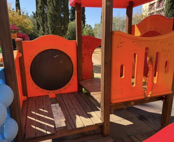 Altalene rotte, scivoli danneggiati, recinzioni improvvisate e rifiuti sparsi ovunque: ciò che dovrebbe essere un luogo di gioia e socialità per i bambini si è trasformato in un’area pericolosa e degradata, dove l’unico gioco possibile è quello dell’incuria.