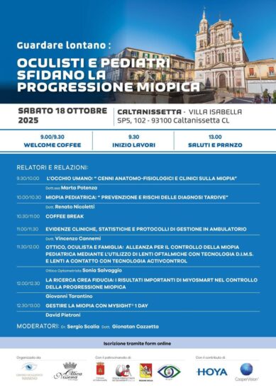 Un convegno di rilievo scientifico e sociale si terrà sabato 18 ottobre 2025 a Villa Isabella, a Caltanissetta, dal titolo “Guardare lontano: Oculisti e Pediatri sfidano la Progressione Miopica”.