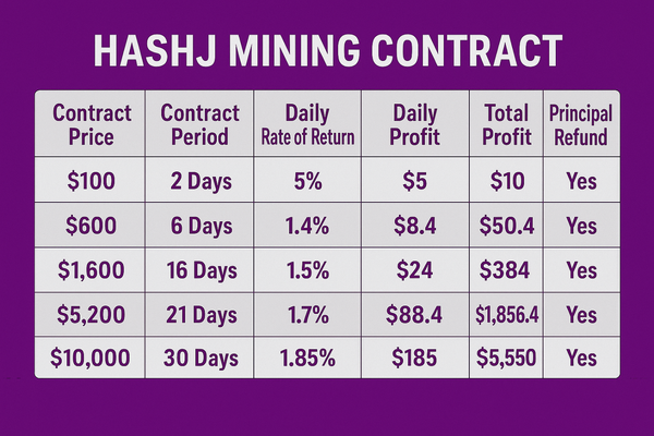 Investire in criptovalute è stato a lungo associato alla speculazione, all’acquisto a basso prezzo, alla vendita a prezzo alto e all’attesa del passaggio dell’ondata favorevole. Tuttavia, questa strategia è rischiosa, imprevedibile e spesso non accessibile agli investitori abituali. Eliminando la dipendenza dalle fluttuazioni dei prezzi e fornendo entrate giornaliere costanti tramite sofisticati contratti di cloud mining, Hashj Mining trasforma il mercato. Gli investitori possono ora accedere a un sistema basato su sicurezza, trasparenza e scalabilità, anziché rischiare il proprio denaro in mercati instabili, inaugurando una nuova era in cui il mining è il modo più sensato e affidabile per fare soldi.