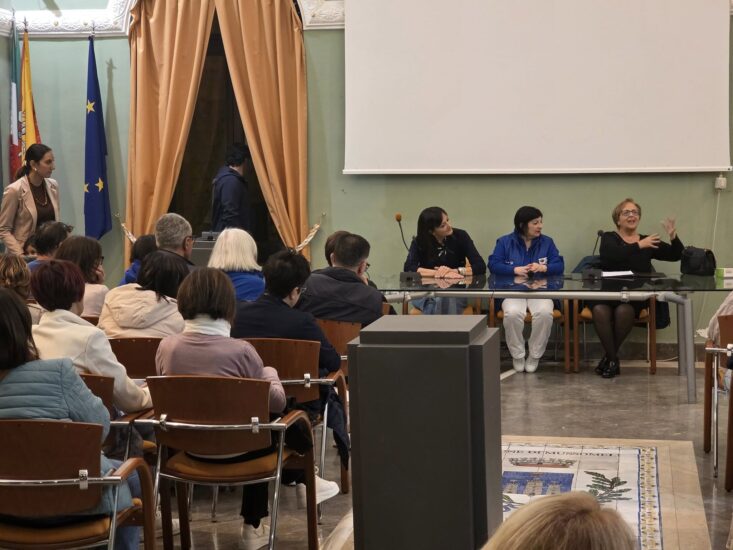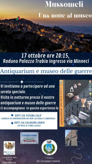 MUSSOMELI – Partecipata “UNA NOTTE AL MUSEO” nella Terra di Manfredi, quella del 17 ottobre 2025, organizzata dalla Pro Loco di Mussomeli, che sembra averci preso gusto a questo tipo di iniziativa dove sono state coinvolte, in queste edizioni estive – autunnali del 2025, persone di tutte le fasce d’età interessate all’argomento proposto. Palazzo Sgadari col suo Antiquarium, dove si trovano vetrine ordinate che espongono oggetti di uso quotidiano, spesso frammentari; Anfore, monete e sculture. La visita è risultata un’esperienza affascinante, per non parlare del museo delle Guerre, le cui immagini, visibili nelle pareti, trasmettono sentimenti di pietà e di devozione.. Alto livello culturale, dunque, se si pensa che la già preside professoressa Rina Genco e l’artista Tiziana Calà hanno letteralmente catturato l’attenzione dei partecipanti che è pensabile non abbiamo perso un attimo dell’argomentare sapientemente esposto dalle due relatrici: Rina Genco e Tiziana Calà. Preliminarmente e comodamente seduti nella prestigiosa ed ampia sala di Palazzo Sgadari, presente il vice sindaco Seby Lo Conte, dopo il saluto della Presidente della Pro Loco Zina Falzone, col coordinamento dell’incontro serale a cura di Cinzia Frangiamore, i presenti hanno potuto ascoltare dalla viva voce delle relatrici, storia e fatti locali, in una cornice culturale, che ha destato l’attenzione, curiosità ed interesse sull’archeologia con l’antiquarium con i suoi reperti storici e, successivamente al museo delle guerre le cui immagini del periodo parlano il linguaggio di famiglie in preoccupazione e del non ritorno in patria dei diversi concittadini Caduti in guerra. Trattasi appunto di nostri compaesani che hanno sofferto il terribile periodo della guerra che ha consegnato alla storia lutti, disastri e tanta sofferenza. Il tutto, raccontato, spiegato dalla bravura e competenza delle relatrici che sono state sapientemente l’anima della Notte al Museo, ideata e curata dalla superattiva ProLoco di Mussomeli, riservando a loro l’omaggio floreale e per tutti quanti un sobrio rinfresco.