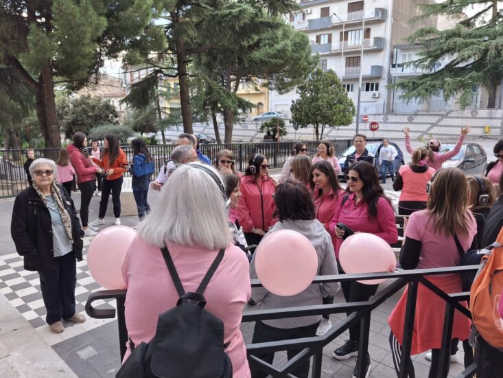 MUSSOMELI – Manifestazione in rosa, nello scorso pomeriggio pomeridiano del 20 ottobre trascorso in ottima compagnia, guidati dall’ istruttore Fitness Fabio Reina e con l’obiettivo comune: IL ROSA. Per l’occasione ha accolto il nostro invito il dott. Rino Sorce medico radiologo del Centro Medes Poliambulatorio, che ha illustrato l’importanza dei controlli preventivi. Un percorso in musica con tanto di cuffie lungo le vie del centro storico, Piazza Umberto e Madrice ed altri lembi di terra reconditi, trasmettendo aria di festa, spensieratezza dando spazio ai ritmi danzanti creando una suggestiva coreografia nell’ambiente che le aderenti all’iniziativa della Pro Loco di Mussomeli pongono in essere finalizzato soprattutto alla valorizzazione del territorio che da qualche tempo non solo è attenzionato ma visitato e praticato. Un’organizzazione perfetta, una tempificazione rispettato, luoghi visitati e tanta musica in cuffia che ha deliziato i partecipanti. Soddisfatti gli organizzatori, compiaciuti i protagonisti, l’iniziativa con scopo culturale ha avuto il suo successo che si aggiungono agli altri, mentre l’attività della Pro Loco si arricchisce di eventi che profumano di crescita sociale.