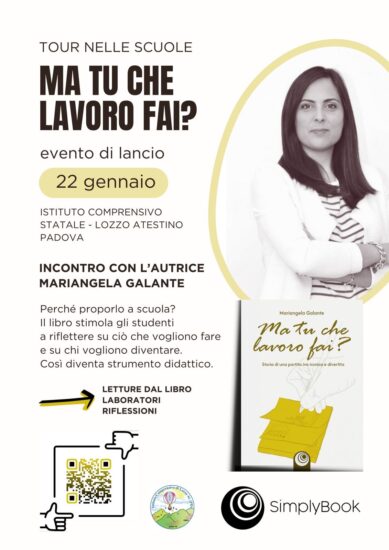 «Non volevo fare un saggio o un manuale, ma condividere emozioni e dubbi che molti vivono ogni giorno. Portarlo nelle scuole significa dare ai ragazzi la possibilità di guardarsi dentro e capire che la vera scelta non è solo che lavoro fare, ma che persona diventare.» Il progetto prevede una serie di incontri con studenti e docenti, con letture guidate, laboratori e momenti di riflessione. Il libro, così, diventa uno strumento didattico di orientamento e di educazione alla consapevolezza, utile per stimolare nei ragazzi una visione più ampia e personale del futuro. Durante l’evento lancio del 22 gennaio, l’autrice dialogherà con gli studenti dell’Istituto Comprensivo Statale di Lozzo Atestino, offrendo spunti su come affrontare le proprie scelte con curiosità, spirito critico e un pizzico di ironia. Perché proporlo a scuola «L’orientamento non è solo scegliere una scuola o un mestiere», sottolinea il Dirigente Scolastico dell’Istituto Comprensivo di Lozzo Atestino, Alfonso D’Ambrosio. «È un percorso di crescita che parte dalla conoscenza di sé. Il libro di Mariangela Galante aiuta i ragazzi a porsi domande, a riflettere sui propri talenti e ad aprirsi alla complessità del mondo del lavoro con uno sguardo nuovo e consapevole. Ed è per questo motivo che abbiamo scelto di acquistare delle copie per regalarlo ai più meritevoli; non solo faremo questo primo incontro di gennaio con le classi terze ma ne è previsto un secondo a marzo, in occasione della nostra settimana dei club, in cui l’autrice dialogherà con le seconde e le prime classi.» L’incontro del 22 gennaio rappresenta il primo appuntamento di un tour che toccherà altre scuole del territorio nazionale, on line e off line, costruendo un dialogo concreto tra formazione, cultura e realtà professionale. L’evento, organizzato con il supporto della casa editrice SimplyBook, nasce dal desiderio di creare spazi di confronto reali tra giovani e adulti, insegnanti e professionisti. La domanda che dà il titolo al libro – “Ma tu che lavoro fai?” – diventa così una chiave per parlare di identità, aspirazioni e cambiamento in un tempo in cui il lavoro è sempre più fluido e in continua evoluzione.