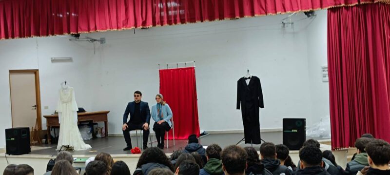 Nella ricorrenza della “Giornata internazionale per l’eliminazione della violenza contro le donne”, lunedì 24 novembre l’I.I.S. “G:B. Hodierna” ha ospitato presso l’Auditorium “Lillo Zucchetto” lo spettacolo teatrale “Viola. Come l’amore” ispirato alla vicenda di Franca Viola, scritto e diretto da Salvatore Riggi che ne è stato anche l’interprete insieme a Carmen Amoroso. Un copione che mescola monologhi, narrazione, testimonianze vere, musica, ironia, per parlare di violenza di genere, diritti civili, giustizia e coraggio. E’ il ritratto di una rivoluzione silenziosa, nata in una piccola città e diventata un simbolo per generazioni. Gli studenti, sia del biennio che del triennio hanno seguito con attenzione la rappresentazione. E oggi più che mai serve parlare nelle scuole di educazione sentimentale, di parità, di responsabilità con la consapevolezza che il cambiamento parte dalle giovani menti dei ragazzi che devono essere educati alla bellezza e al rispetto. Franca Viola, contattata direttamente dalla scuola, ha inviato un messaggio rivolto a tutti gli studenti “…non siate fragili…”