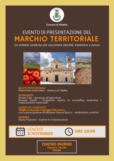 VILLALBA,-– Il Comune di Villalba invita cittadini, imprese, associazioni e stampa all’evento di presentazione del Marchio Territoriale di Villalba, che si terrà venerdì 21 novembre alle ore 18.00 presso il Centro Diurno di Villalba, sito in Piazza S. Pertini. L’incontro rappresenta un momento di grande importanza per la comunità villalbese e per l’intero Vallone, segnando l’avvio di un percorso condiviso verso la rigenerazione e valorizzazione dell’identità locale e la promozione di quell’entroterra siciliano che offre un paesaggio rurale e naturale custode di secoli di storia e tradizioni contadine, oggi di grande interesse sia per i viaggiatori esperienziali che per il turismo di prossimità. Il marchio territoriale di Villalba nasce come progetto visionario per lo sviluppo del territorio, ideato e promosso dall’Assessore all’Agricoltura Silvana Calà e fortemente sostenuto dall’Amministrazione Comunale guidata dal Sindaco Maria Paola Immordino. L’obiettivo è quello di unire sotto un’unica identità visiva e narrativa il patrimonio culturale, naturale e produttivo del paese, valorizzandone le eccellenze e rafforzandone il riconoscimento sia a livello locale che oltre i confini comunali. Per gli operatori economici, culturali e per il Consorzio di Tutela e Promozione della Lenticchia di Villaba, il nuovo marchio territoriale rappresenta la volontà di riappropriarsi di quanto di più prezioso una comunità possiede: la terra, la cultura, le colture, le persone, i cunti. La nuova identità visiva affiancherà lo stemma comunale e ne rafforzerà la narrazione. A presentare il progetto sarà Rossana Danile, progettista ed esperta di storytelling marketing e rigenerazione sostenibile dei territori. Danile, che ha ideato e creato il marchio di Villalba e ne ha tracciato le linee guida, illustrerà le fasi del percorso partecipato che ha portato alla creazione del marchio e le strategie future per la sua diffusione e utilizzo da parte di imprese, associazioni culturali e portatori di interesse. La serata prevede un momento di confronto e di dialogo comunitario che sarà facilitato dal “medicartista” Salvatore Nocera Bracco, medico, musicista, scrittore, da anni impegnato in progetti su tutto il territorio nazionale, che mirano alla cura della singola persona e della collettività attraverso la pratica dialogica. “Si tratta di un progetto di storytelling territoriale articolato che innesca un processo di rigenerazione consapevole e partecipato” spiega Rossana Danile “Il nuovo marchio intende rappresentare e dare voce alle persone, ai luoghi e alle storie che rendono unico il territorio di Villalba e con esso l’entroterra siciliano. Un entroterra che ha un cuore pulsante che, in questo momento storico come in altre regioni d’Italia, è in affaticamento per una serie di criticità che è doveroso affrontare. Il marchio territoriale non è dunque da intendere come un segno grafico, ma un atto di resistenza. Un simbolo che ha l’obiettivo di generare senso di appartenenza e una nuova consapevolezza, necessaria per cogliere le nuove opportunità di sviluppo che bussano alla porta e possono permettere ai più giovani di rimanere, nel tentativo di scongiurare il preoccupante fenomeno dello spopolamento. A Villalba nel 2025 è nato un solo bambino. E’ necessario credere nel progetto tutti insieme per offrire benessere prima che ai turisti, ai residenti”. “Il progetto del marchio territoriale nasce con l’obiettivo di promuovere Villalba come destinazione autentica e sostenibile, fuori dai circuiti turistici di massa, e al contempo diffonderne la storia e la cultura attraverso la narrazione del paesaggio e dei suoi simboli” sottolinea il Sindaco Immordino. “Il marchio rappresenta un punto di partenza per un nuovo modo di pensare a Villalba: un modo che parte dai suoi punti di forza per guardare con più fiducia al futuro”. “Abbiamo voluto intrecciare cultura, agricoltura e narrazione perché crediamo che la rinascita del nostro territorio passi dalla capacità di raccontarsi e farsi riconoscere” dichiara Silvana Calà “L’obiettivo è dare un’identità visiva e narrativa a Villalba, un’immagine riconoscibile che serva da strumento di promozione del territorio e delle sue eccellenze imprenditoriali. Allo stesso tempo puntiamo a coinvolgere la comunità villalbese, soprattutto le nuove generazioni, in un percorso di riconoscimento e orgoglio territoriale e ad incoraggiare l’adozione del marchio territoriale da parte delle aziende locali di ogni settore, non solo agricolo, come strumento per promuovere l’identità culturale e sociale del territorio favorendo così la creazione di una rete di imprese ambasciatrici della comunità villalbese”.