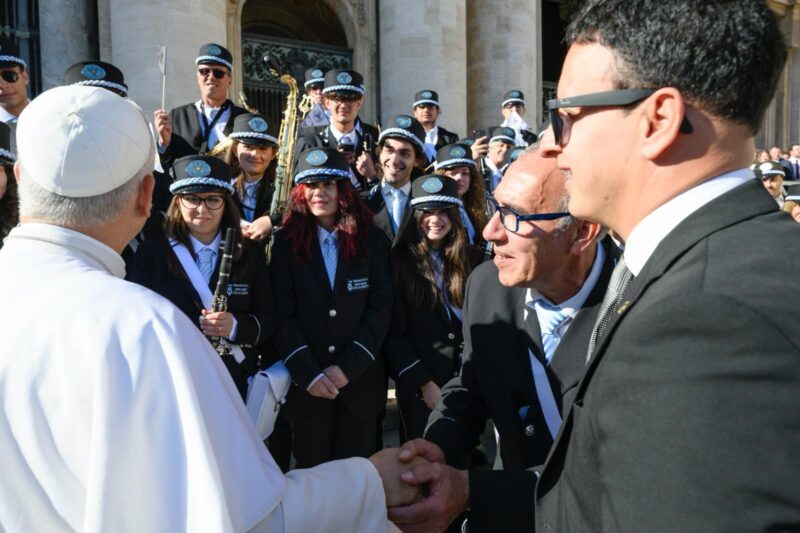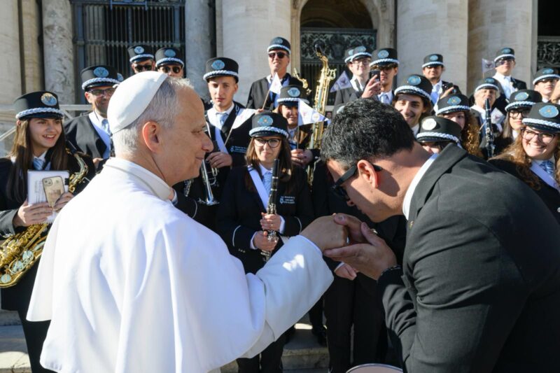 Il passaggio della Papamobile ha dato il via alle prime note, accolte dal boato dei fedeli, trasformando l’emozione in una festa internazionale. Ma il momento più intenso è arrivato al termine dell’Udienza, quando il cerimoniere vaticano ha invitato il gruppo a posizionarsi dietro l’altare per incontrare da vicino il Santo Padre. In quell’istante, molti ragazzi della banda avevano le lacrime agli occhi, consapevoli dell’unicità di quanto stavano vivendo. Papa Leone ha salutato personalmente i musicisti, accolto dal maestro Palumbo e dal fondatore Maurizio Principato, prima della foto di gruppo e della benedizione impartita a tutti i presenti.