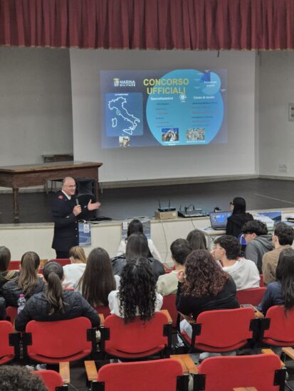 MUSSOMELI – Ieri l’altro, in un incontro finalizzato all’orientamento in uscita, gli alunni dell’istituto Virgilio di Mussomeli, guidato dalla Dirigente Scolastica prof.ssa Alessandra Camerota, hanno avuto la possibilità di conoscere l’affascinante e variegato mondo della Marina Militare. Relatore il Primo Luogotenente Filippo Tropea, addetto stampa del Comando Marittimo di Sicilia, accompagnato dal sig. Domenico Peluso, responsabile della Sala Storica del Comando Marittimo Sicilia. Durante l’intervento il sottotenente ha illustrato agli alunni le caratteristiche e peculiarità della Marina Militare, soffermandosi sui diversi bandi di concorso, destinati ai giovani dai 17 ai 25 anni. “Tali concorsi, ha sottolineato, oltre a permettere ai ragazzi di potere accedere ai vari profili di carriera secondo gli iter diversificati (Accademia Navale di Livorno, per gli Ufficiali – Scuola Sottufficiale di Taranto, per i Marescialli – Volontari in Ferma Iniziale, e per il personale del Ruolo Graduato e Truppa) offrono la grande possibilità di potere realizzare il sogno lavorativo, oggi tanto ricercato. L’incontro ha avuto lo scopo di offrire agli alunni alcune chiavi per creare il proprio futuro aprendosi a diverse prospettive lavorative.