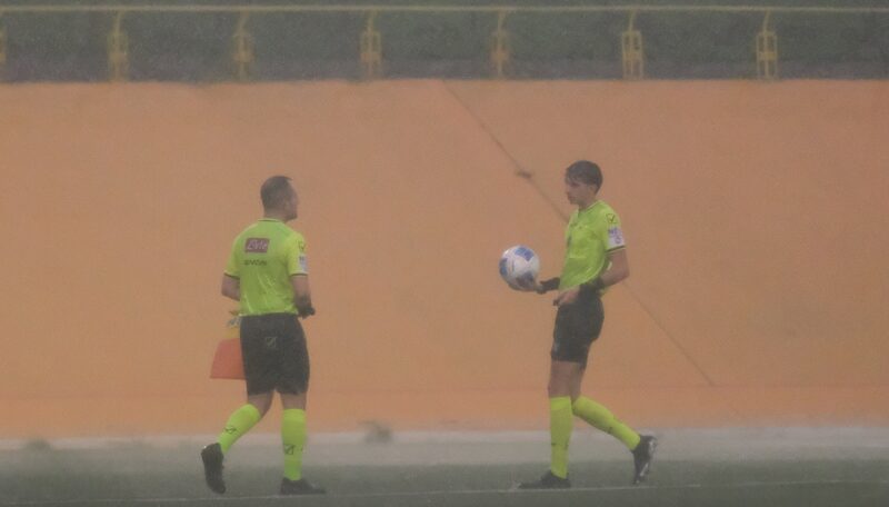 Poi l’intensificarsi del fenomeno atmosferico con la bomba d’acqua che ha costretto l’arbitro a sospendere l’incontro e poi a rinviarlo a data da destinarsi dopo che i tentativi di giocare sono stati vanificati dalle condizioni del terreno di gioco interamente inzuppato d’acqua. A questo punto diventa importante per la classifica conoscere la data nella quale sarà giocata la partita.