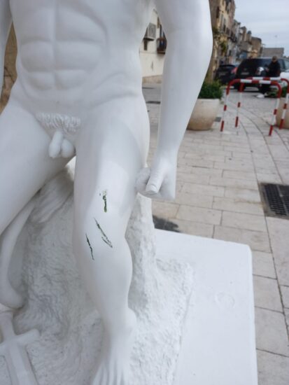 E’ proprio il caso di dire che “La Frittata è fatta”. Quando qualcuno usa la violenza e il danno si concretizza — che colpisca un oggetto o una persona — purtroppo l’evento che non doveva verificarsi è già accaduto e abbiamo perso tutti. Questo accade a prescindere dalle denunce e dall’iter investigativo che porterà all’identificazione dei responsabili e dei ladri. Sì, perché l’opera non è stata solo danneggiata, ma è stato sottratto il ramoscello d’ulivo in metallo artistico realizzato da Daniele Iraci.
