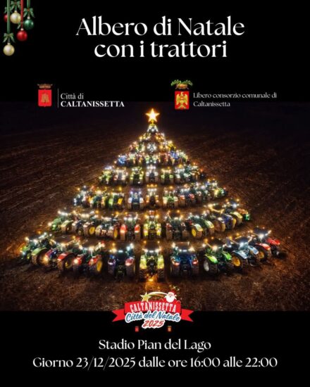 Dopo il successo della prima edizione, il gruppo di agricoltori della provincia di Caltanissetta ripropone la seconda edizione dell’evento “Albero di Natale con i trattori”.