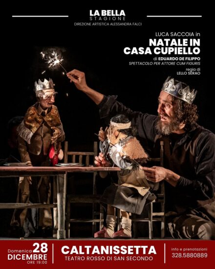 Caltanissetta ospita in esclusiva regionale una delle produzioni teatrali più acclamate degli ultimi anni. Domenica 28 dicembre 2025, alle ore 19:00, il Teatro Rosso di San Secondo accoglierà Natale in Casa Cupiello di Eduardo De Filippo, interpretato da Luca Saccoia e diretto da Lello Serao, per l’unica data siciliana dello spettacolo inserita nella stagione La Bella Stagione, diretta da Alessandra Falci.