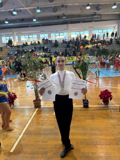 Mattia Turiano, impegnato nella categoria CT 17/O Classe B, ha conquistato il 1° posto in tutte le danze latine presentate: Samba, Cha Cha Cha, Rumba e Jive, confermandosi protagonista assoluto della competizione.